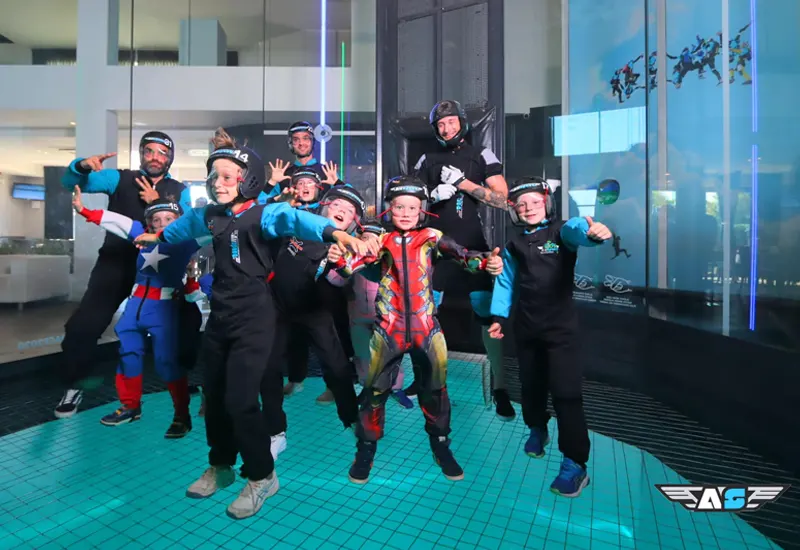 Rien de plus simple. Il vous suffit de commander notre pack anniversaire pour enfants de 4 à 12 ans. Ce pack permet à un groupe de minimum 5 enfants de venir découvrir la simulation de chute libre : briefing, équipement, deux « chutes » en soufflerie pour tous les enfants, démonstration par un pro, et surtout pleins de photos et vidéos réalisées par nos soins !