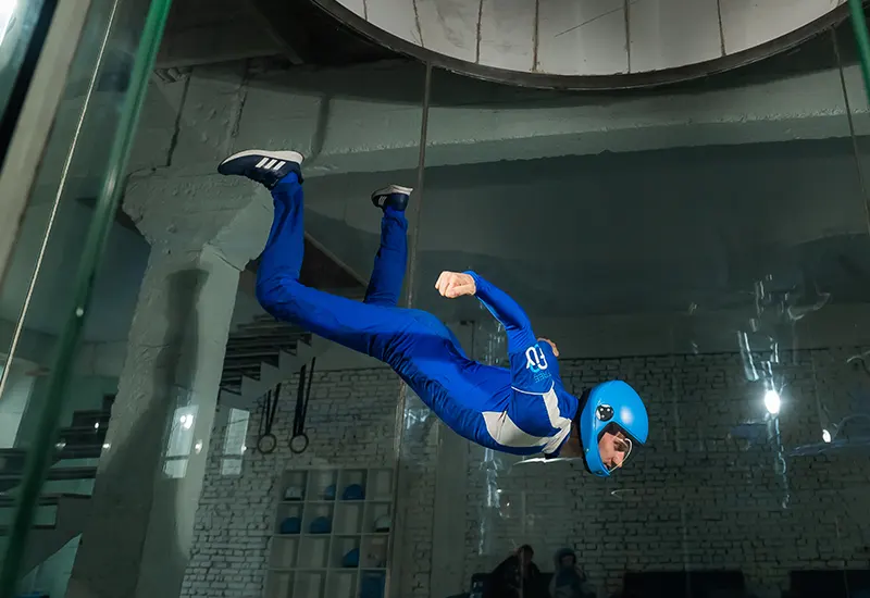 Car notre simulateur de chute libre se trouve à l'intérieur d'un bâtiment, bien à l'abri du vent, de la pluie et du froid. D'ailleurs il n'y a pas de fenêtre autour du simulateur, vous ne devrez pas supporter la vue des nuages et du bitume trempé. Vous pourrez entièrement vous concentrer sur votre activité.